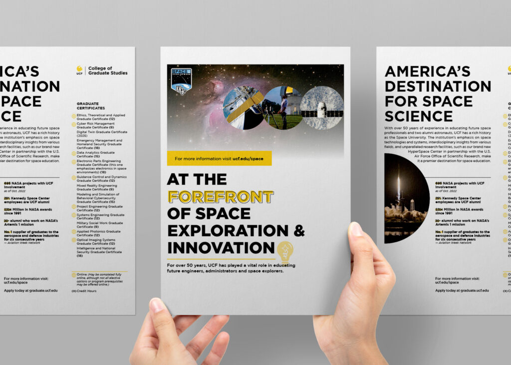 The College of Graduate Studies Communications team plays a central role in advancing college initiatives through strategic communication, social media, and outreach. The team manages publications, designs graphics, develops marketing materials, promotes events, shares faculty and student achievements, and strengthens UCF’s digital presence across multiple platforms.