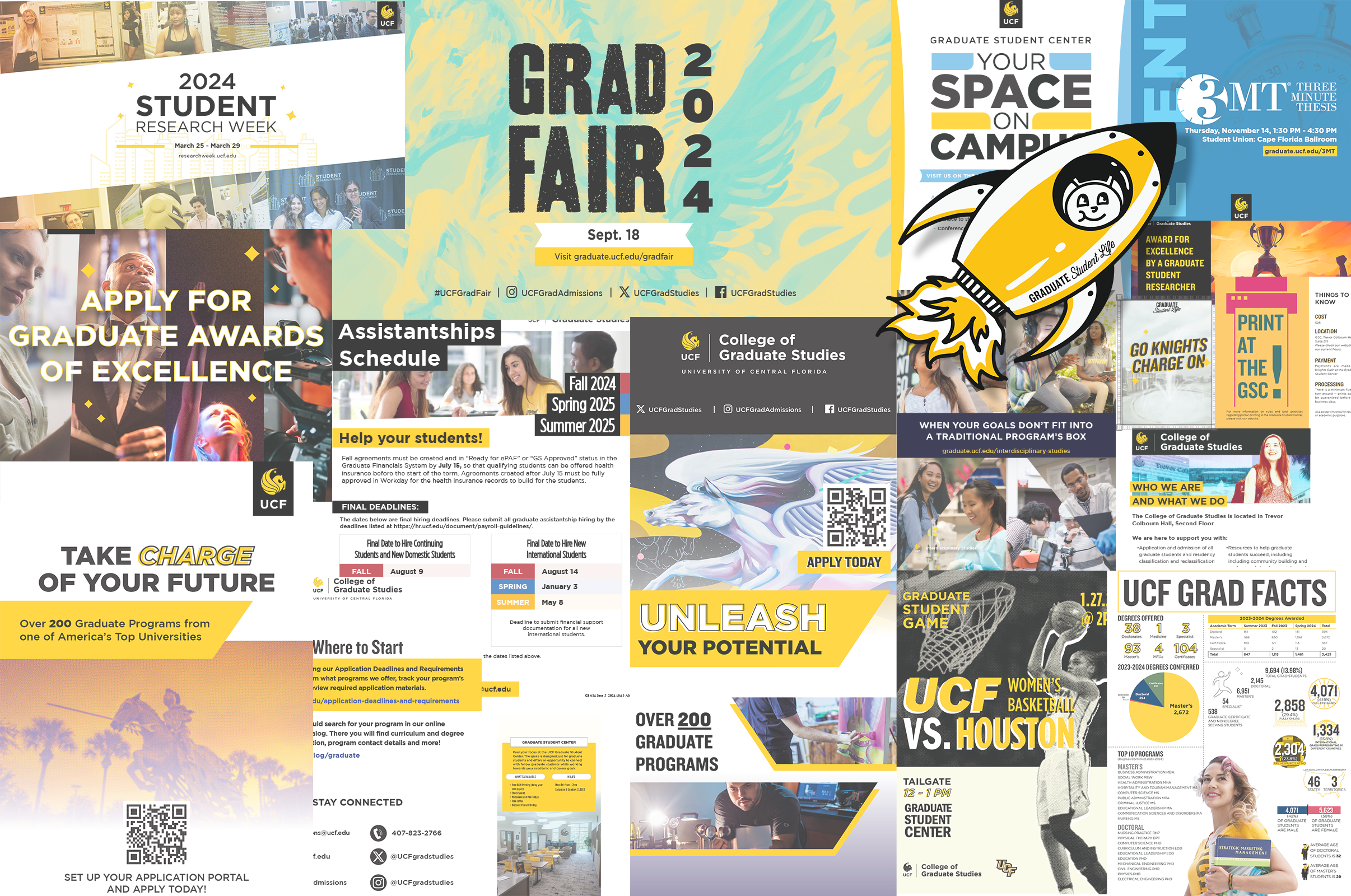 The College of Graduate Studies Communications team plays a central role in advancing college initiatives through strategic communication, social media, and outreach. The team manages publications, designs graphics, develops marketing materials, promotes events, shares faculty and student achievements, and strengthens UCF’s digital presence across multiple platforms.