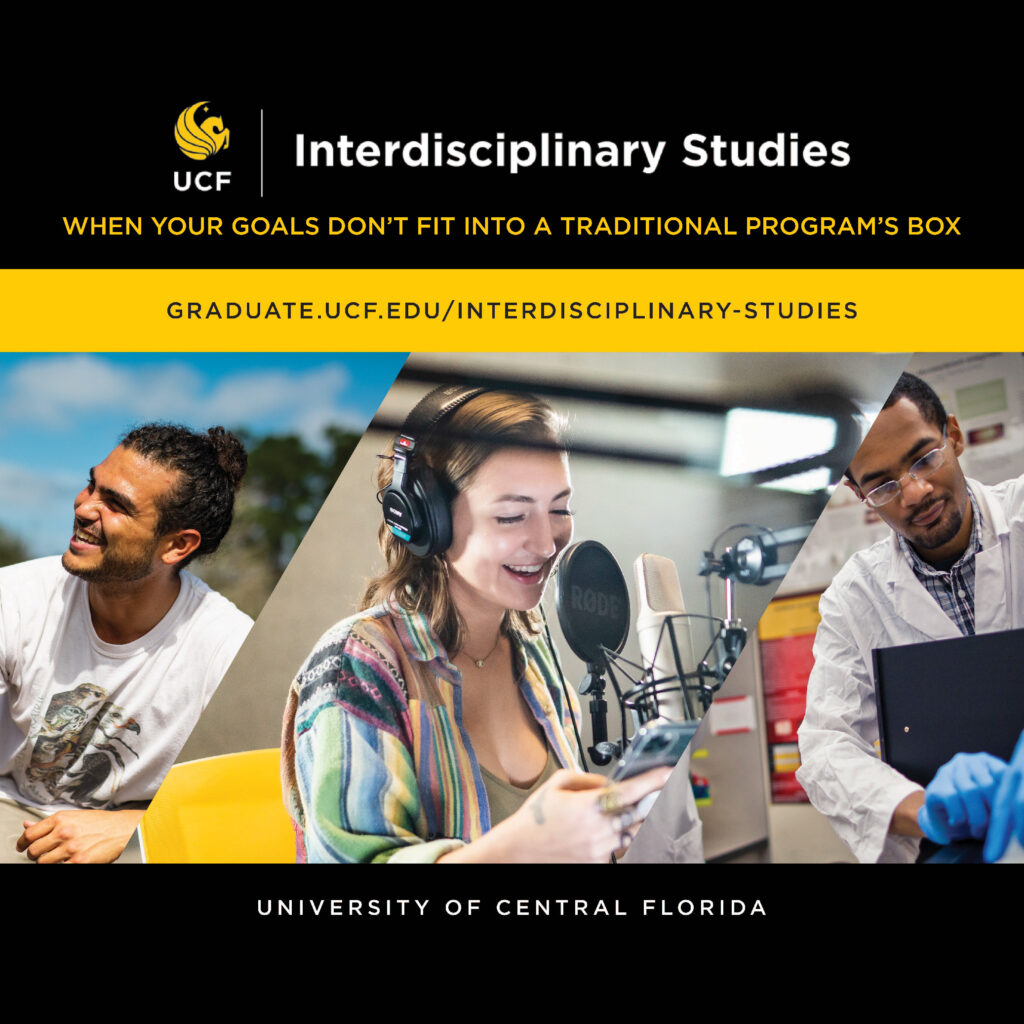 The master’s program in Interdisciplinary Studies enables students to combine multiple fields of study, allowing them to explore emerging knowledge or develop innovative solutions to complex problems. Additionally, the program serves as an incubator, assisting UCF in assessing student interest in new degree offerings across various colleges and departments.