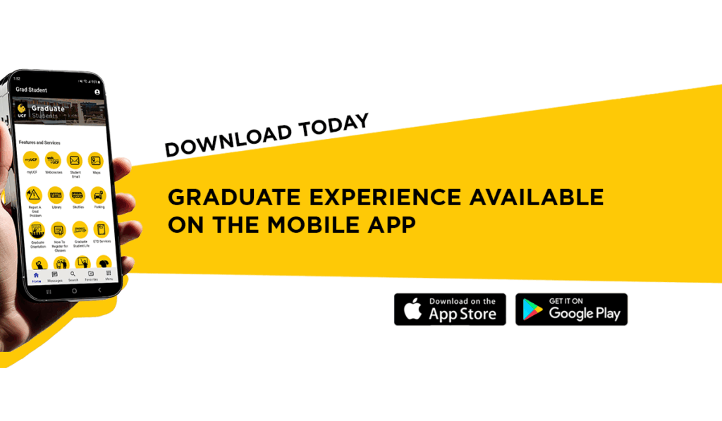 This year, we launched a new Graduate Experience within the UCF Mobile App to provide graduate students with tailored, easy-to-access information that supports them throughout their academic journey. Created to help students quickly connect with essential services and resources, the Graduate Experience features a wide range of curated content, including Graduate Orientation, ETD Services, Graduate Student Life, and many other graduate-specific tools.