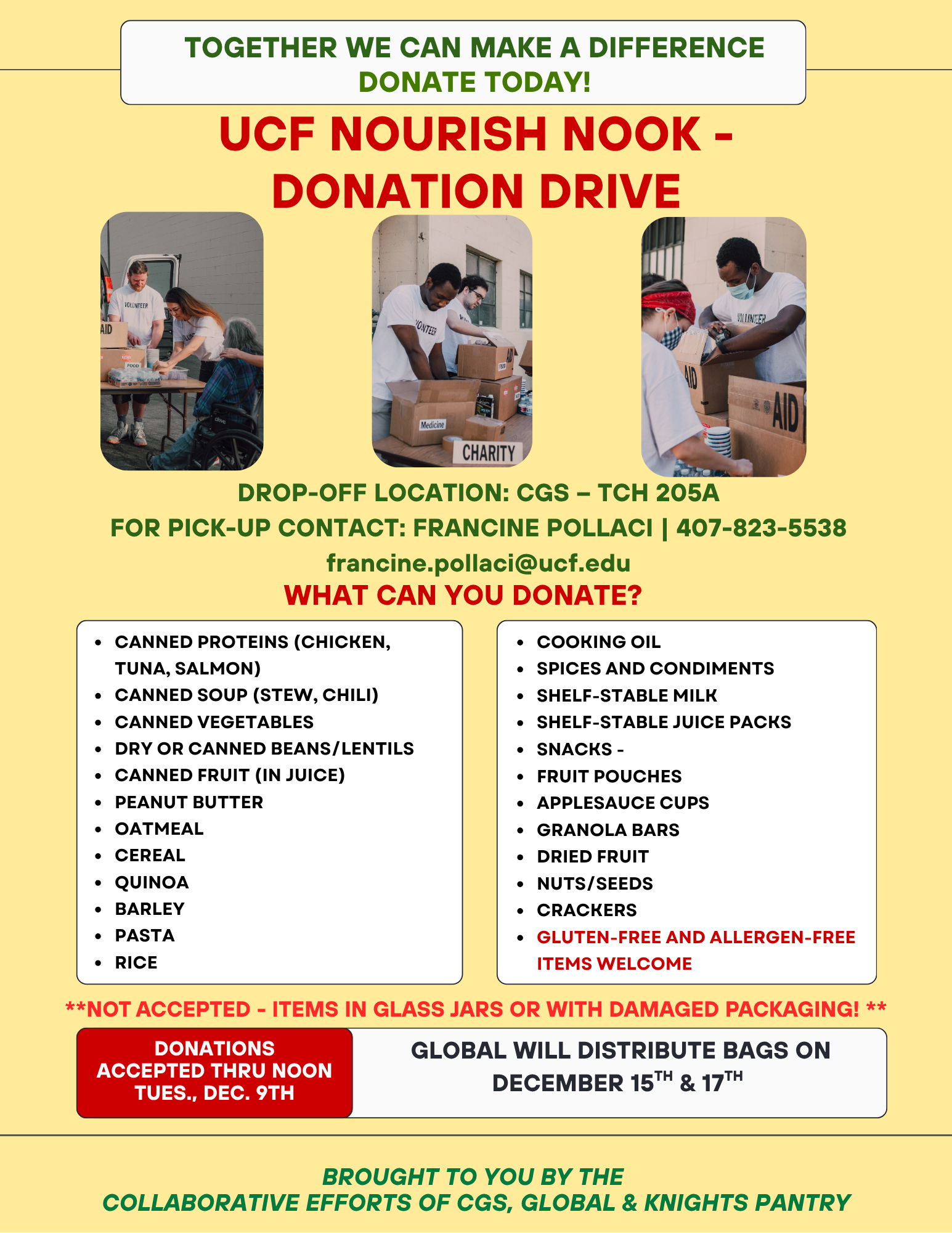 The UCF Nourish Nook helps support students facing food insecurity, especially during academic breaks. Learn more about how you can help stock the Nourish Nook and support UCF students this season! Find donation details, accepted items, and distribution dates in the flyer below.